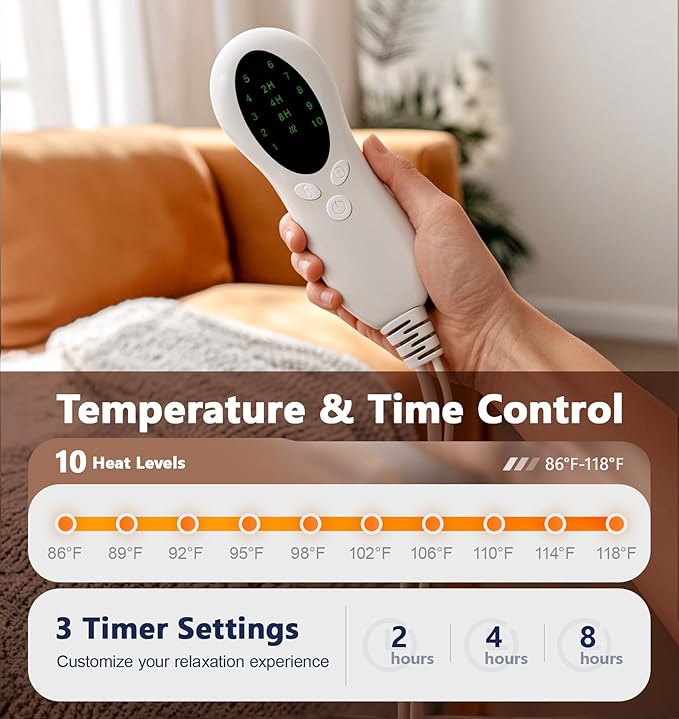 - Sleep-Safe Certified: ETL & FCC certified with overheat protection, this heating blanket ensures safety during use. The 120V system provides peace of mind while staying warm - ideal for workplace, chilly morning, movie nights, and poorly heated bedrooms