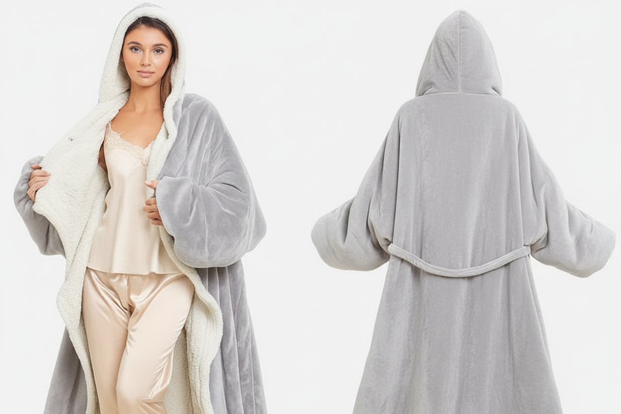 - Flannel & Sherpa Wearable Blanket: Featuring a front 7 oz/yd² butter-smooth flannel and back layer of 6 oz/yd² plush Sherpa fleece, this heated wearable blanket delivers excepetional coziness, offering cloud-like softness while wrapping you in gentle, all-day warmth